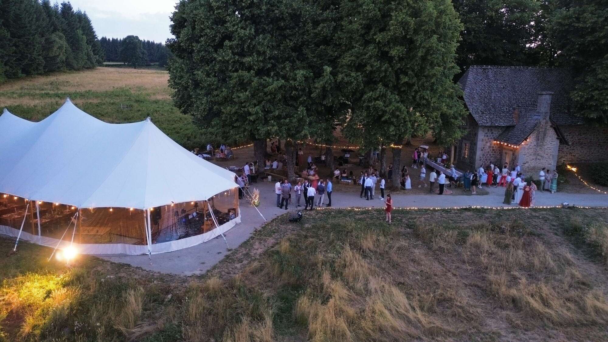 Nous vous proposons un espace de réception éphémère de 200m² pouvant accueillir jusqu’à 120 personnes profitant d’un dîner assis et d’une grande piste de danse.